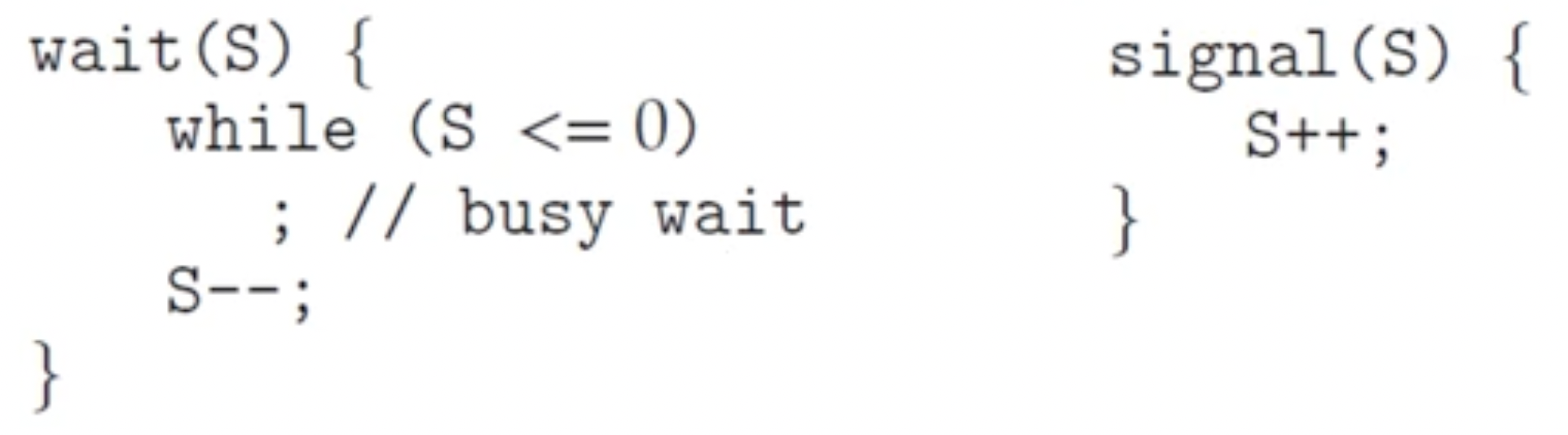 원하는 수 만큼 S를 주고, S가 0이 되면 접근할 수 없게 한다. => s를 1로 주면 0,1 밖에 안되기 때문에 뮤텍스와 같다.